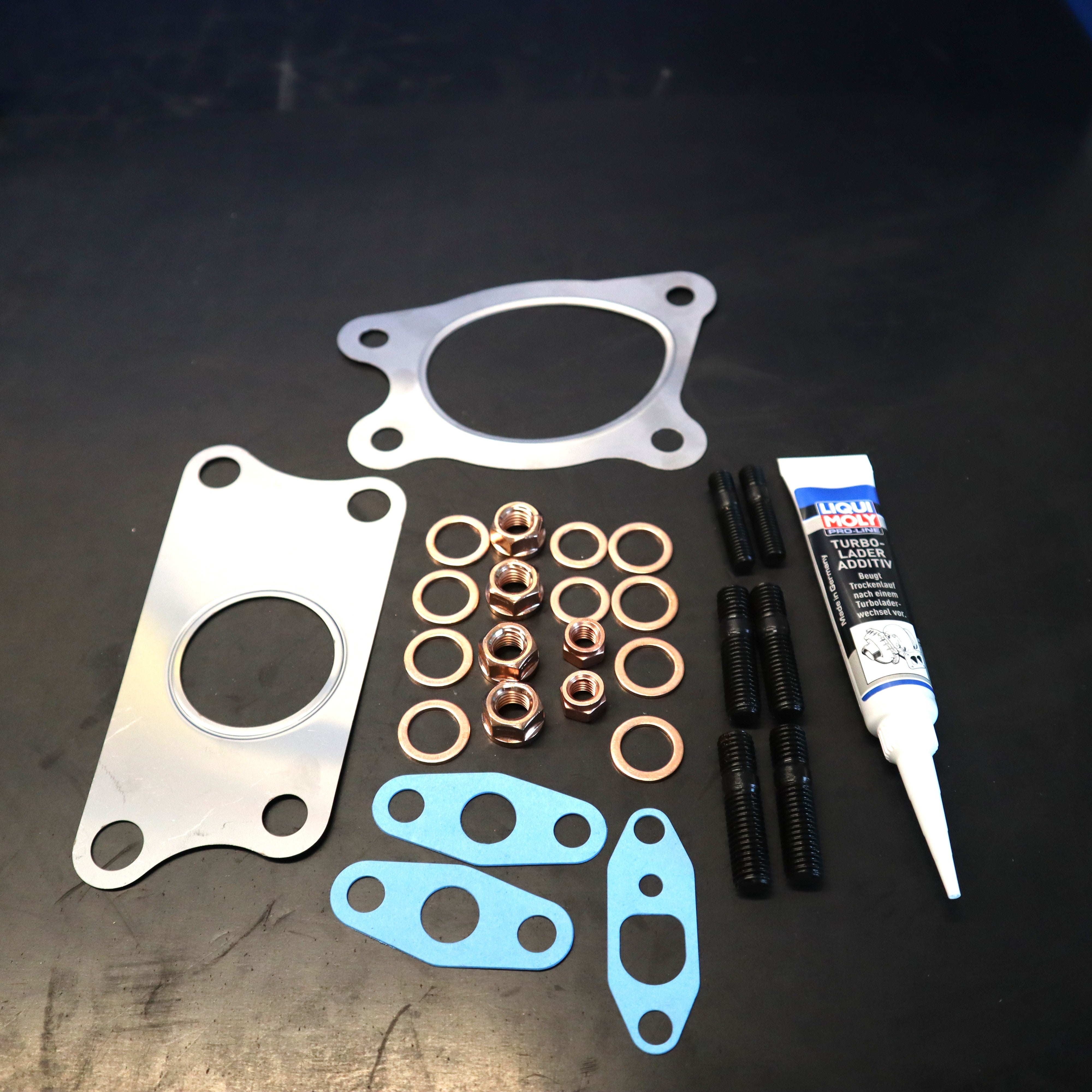 Turbo Care fitting kits are designed to make turbo installation simple and reliable. Each kit comes complete with all the essential components gaskets, studs, nuts, and copper washers so you have everything required in one package.